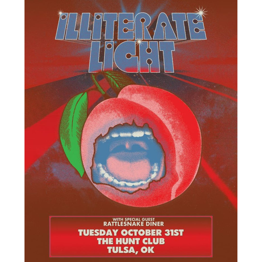Get ready for an all-ages, outdoor stage extravaganza in partnership with The Vanguard. Tennessee/Virginia indie/alternative band Illiterate Light is back in Tulsa, and they're ready to rock your Halloween. Local support comes from Rattlesnake Diner. Illiterate Light, a dynamic duo featuring singer-guitarist Jeff Gorman and drummer Jake Cochran, hailing from Virginia and Tennessee, respectively, delivers powerful and innovative alternative rock. Their unorthodox live performances and commitment to sustainability, including bike-powered stages, have set them apart. Don't miss this electrifying outdoor concert at The Hunt Club, where great music meets a vibrant atmosphere for everyone to enjoy.