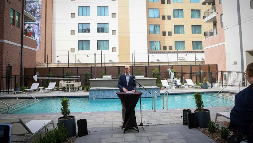 Santa Fe Square is more than just an apartment complex—it’s the centerpiece of a $150 million mixed-use development that has transformed two city blocks in the Blue Dome District. With 184 new residential units, plus retail, dining, and office spaces, the project is helping address Tulsa’s growing demand for housing. Developer Elliot Nelson spoke to the years of work leading up to this moment, noting that the vision for Santa Fe Square dates back to 2004. Mayor Monroe Nichols highlighted the city’s need for over 12,000 new housing units in the next decade, emphasizing that projects like this are key to meeting that goal.